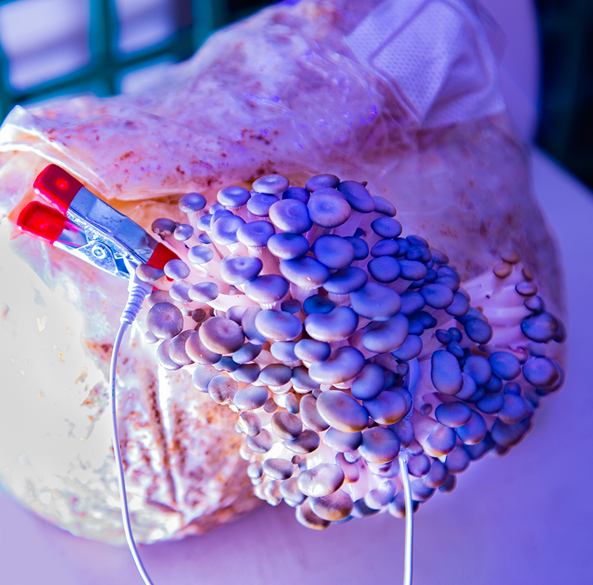 Workshops have included sensory exericses to speculatively sense with and as mushrooms—exploring alternative forms of kinship with mushrooms that aren’t reliant on utility to humans or techno-utopian spectacle. Our sound exercises, designed by Schonberg, provide ways to sense fungi’s vibratory soundscape, as well as use the soil as a substrate through which to process human sounds. Electical impulses from mushrooms are translated to MIDI data so particpants can “hear” a translation of the fungal body’s electical activity and communication.